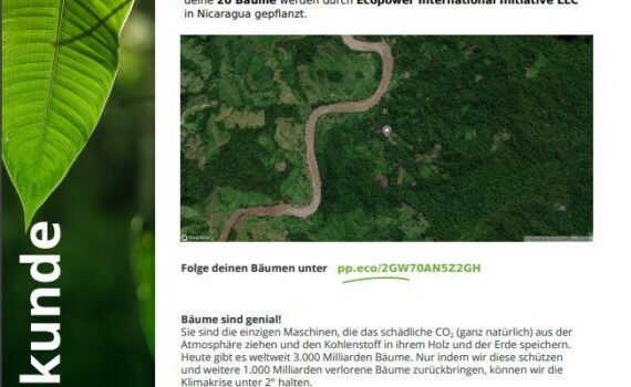 20 Trees in Nicaragua, Ecopower International Initiative LLC, Plant For The Planet https://www.davidschlegl.at/wp-content/uploads/2022/04/PlantForThePlanet_Eden_Nicaragua_Certificate_202107.pdf